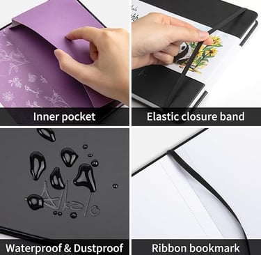 【PRACTICAL & PORTABLE】The sketchbook mixed media develops upgraded perforated pages to make the sketch easily torn off if you need to. This sketchbook has an inner pocket on the back cover and a ribbon bookmark to provide a better sketching experience.