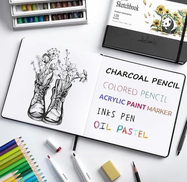 【THICK PREMIUM PAPERS】Our sketchbook employs acid-free paper to protect your sketch work from color fading, 122LB/180GSM Thick Paper enough to avoid bleeding and ghosting. Suitable for Charcoal Pencils, ink pens, Colored Pencils, acrylic paint markers, and oil pastels.