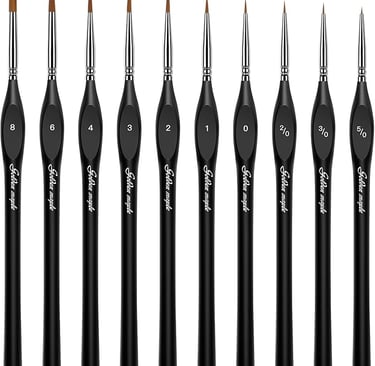 Set 10pcs Miniature Brushes for Fine Detailing & Art Painting - Acrylic, Watercolor, Oil, Models