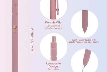 Practical and Simple Design: The convenient clip design can firmly clip the neutral ink ballpoint pen to a book, notebook or bag, easy to carry, without worrying about losing; retractable design, gently press the cap, the pen end automatically retracts