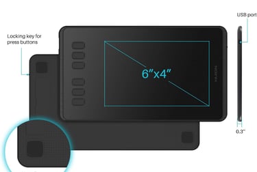 [Customize Your Workflow]: The 6 easy accessable press keys on the H640P drawing tablet for pc can be customized to your favorite shortcut so that your creative work become smoother and more efficient. You also can change the shortcut setting for different apps in Huion driver.