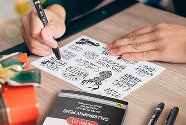 ARCHIVAL QUALITY PIGMENT BLACK INK: This calligraphy set for beginners has water based, pigmented black ink, waterproof, fadeproof, non-bleeding. Use our hand lettering pens or drawing pens to harness your creativity and impress your peers.