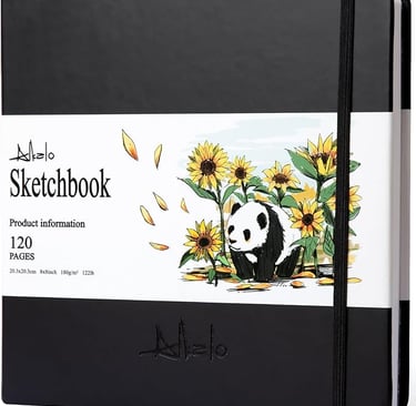 Square Sketchbook for Drawing, 120 Pages Sketch Book, 122LB/180GSM Thick Paper, Mixed Media Sketchbook for Charcoal Pencil, Inks Pen, Colored Pencil, Acrylic Marker, Oil Pastel