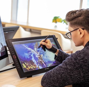 Anti-Glare, More Clarity: The drawing tablet features an anti-glare film, improving visibility by up to 95% even in brightly lit settings, minimizing reflections for clear visibility. Its 178° viewing angle enhances collaboration for animators and architects, allowing effective presentations from various positions. The 1000:1 contrast ratio improves image depth with deeper blacks and brighter whites, providing enhanced color differentiation and clarity.